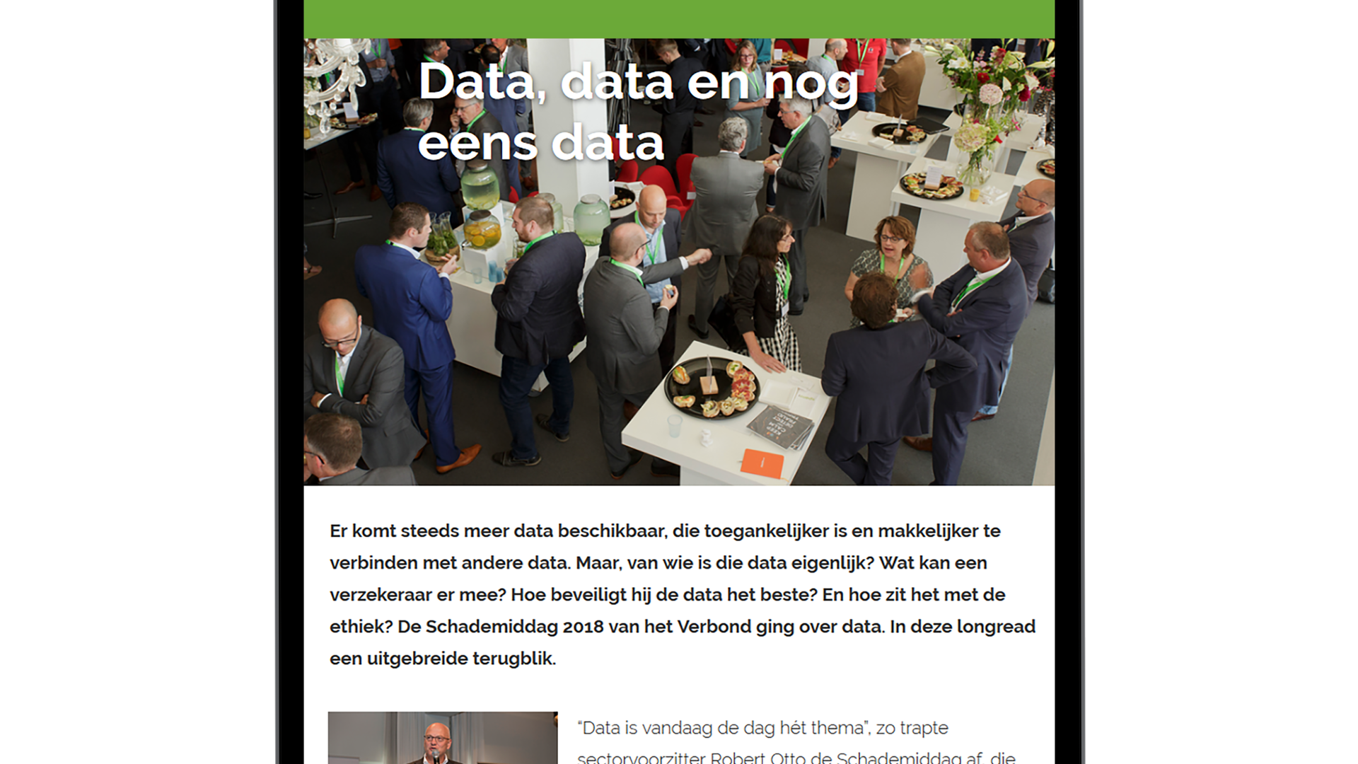 Er komt steeds meer data beschikbaar, die toegankelijker is en makkelijker te verbinden met andere data. Maar van wie is die data eigenlijk? Wat kan een verzekeraar er mee? Hoe beveiligt hij de data het beste? En hoe zit het met de ethiek? De Schademiddag 2018 van het Verbond ging over data. In een longread blikken we uitgebreid terug op alle inleidingen en deelsessies.