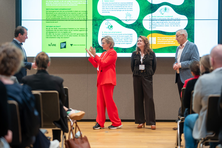 Rob Rommelse van Schoonmakend Nederland benadrukt op zijn beurt dat ‘we in transitie zijn naar duurzaamheid'. “Dan kun je wachten op wet- en regelgeving of je kunt het gewoon gaan doen.” Verbondsdirecteur Geeke Feiter is vooral trots op haar sector. “We zijn met de ondertekening van het Parijs-akkoord op weg naar een net zero samenleving. Met zijn allen. Daar past een zoektocht naar duurzaam schadeherstel als gemeengoed bij. Mijn voorgevoel was dat we elkaar in de keten de ruimte moeten gunnen als we dit voor elkaar willen boksen. Dat voorgevoel is uitgekomen.”