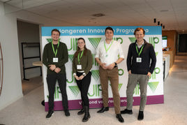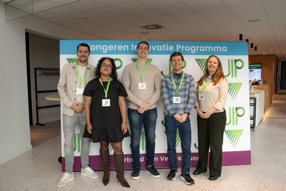 Uiteraard is Geeke Feiter (directeur Verbond) onder de indruk van de 33 jonge talenten. In drie dagen tijd hebben zij in zes teams leren innoveren. Ze hebben zes verschillende thema's bij de kop gepakt, de mogelijkheden van AI ontdekt, klantgedrag onderzocht en gebouwd aan een demo voor een actueel verzekeringsvraagstuk. En dat alles in een moordend tempo, “waarbij er zelfs geen tijd was voor pizza”. Een superfanatieke lichting, aldus Feiter, die de winnaar van deze tiende editie van het Jongeren Innovatie Programma (JIP) bekend mocht maken. Ze benadrukte dat er “slechts vijf stemmen verschil waren tussen de nummer 1 en 2”.