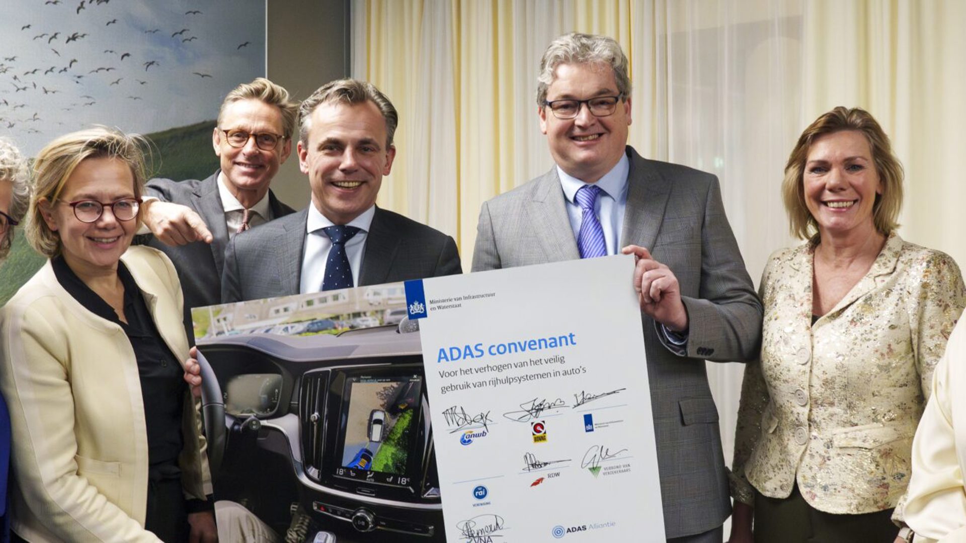 Om het belang te onderstrepen ondertekenen minister Harbers en directeuren van ANWB, BOVAG, Verbond van Verzekeraars, Vereniging Nederlandse Autoleasemaatschappijen (VNA), RDW en de RAI Vereniging het ADAS-convenant. Het convenant is een vervolg op een eerder convenant uit 2019.