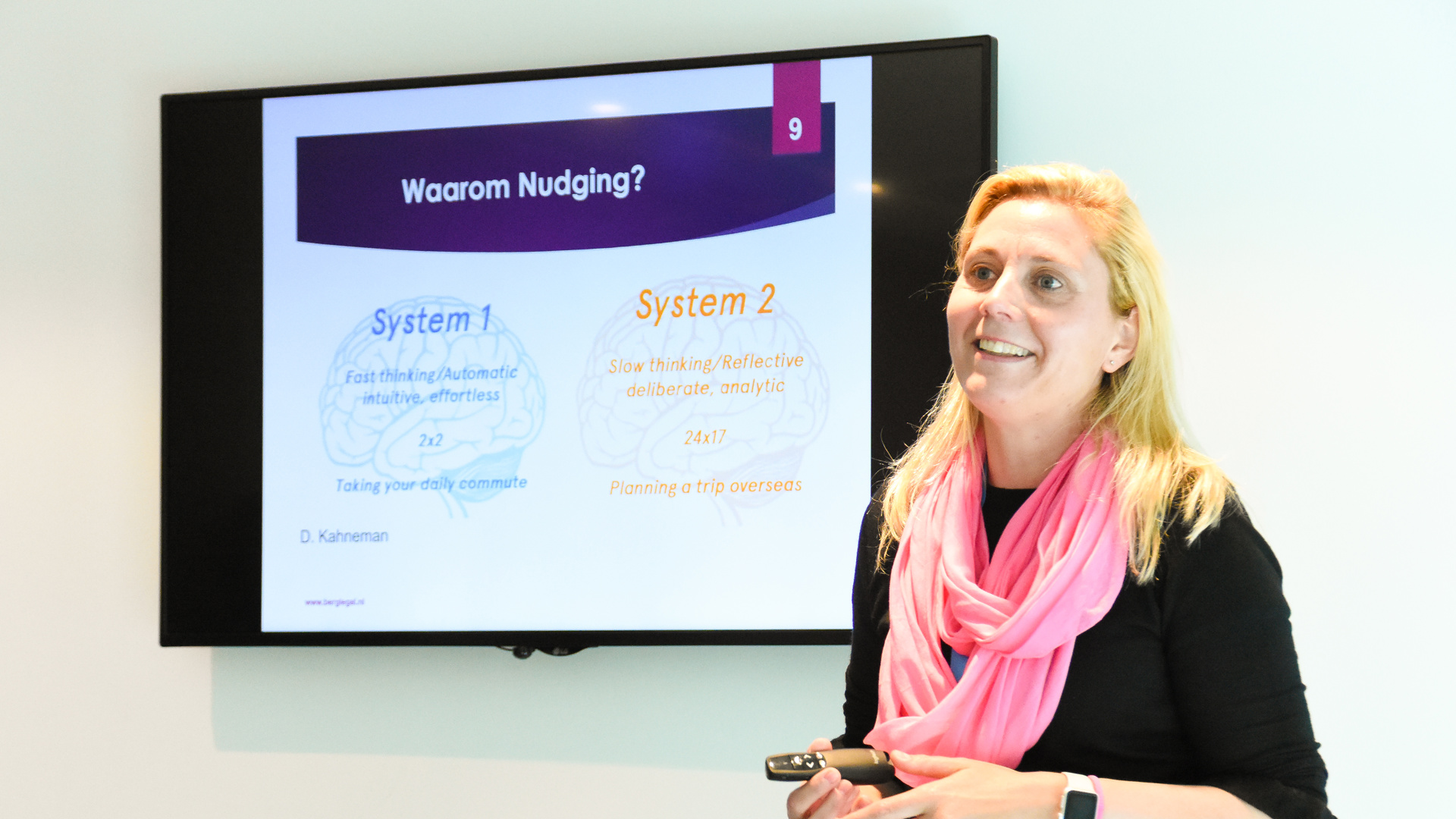 Nudging is nodig, meent zij, omdat wij intuïtief denken. “We willen heel graag de rationale mens zien, die alles leest en begrijpt, actief naar informatie zoekt en met de lange termijn planning van zijn financiën bezig is. Maar de echte mens leest beperkt informatie, zoekt er ook beperkt naar, stelt beslissingen en doet uiteindelijk vooral wat familie en vrienden zeggen. Je maakt met nudging mensen ook niet rationeler. Je kunt hooguit via een zachte benadering proberen om het gedrag van mensen positief te beïnvloeden.”
