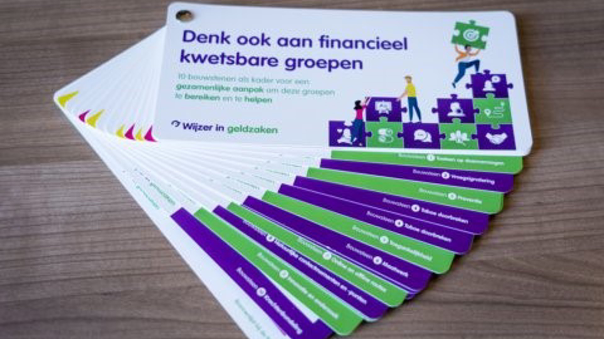 De tien bouwstenen in de waaier dienen als kader voor een gezamenlijke aanpak om financieel kwetsbare groepen te bereiken en te helpen. Ze zijn samengevoegd in een handzame waaier waarin praktische tips, inspiratie en verwijzingen naar hulpmiddelen staan om financieel kwetsbare groepen te helpen in beweging te komen.