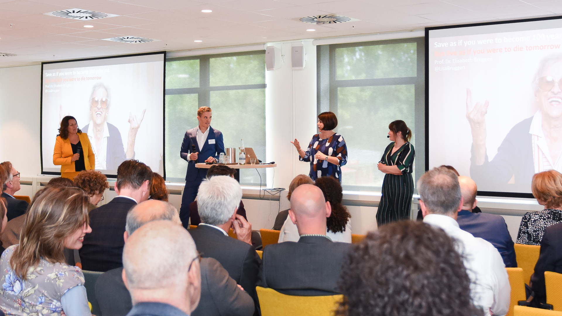 Lisa Brüggen (hoogleraar Financiële dienstverlening) vroeg zich op haar beurt af met welke woorden je mensen in beweging krijgt. “Ze gaan nog liever stofzuigen dan dat ze zich in hun pensioen willen verdiepen.” Belangrijk is volgens haar dat je je goed kunt verplaatsen in de mensen die je wilt informeren. “Nobelprijswinnaar Richard Thaler zei eens dat als je mensen vraagt om over hun pensioen na te denken je ze net zo goed kunt vragen om hun eigen auto te bouwen.”