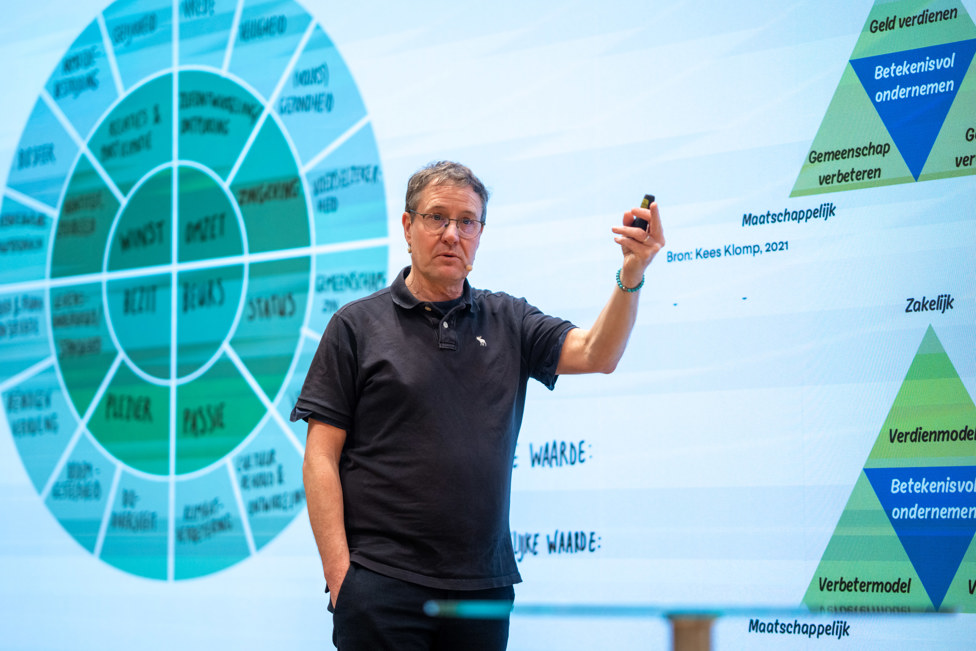 Kees Klomp staat bekend als duurzaamheidsexpert. Hij is een groot aanjager van de betekeniseconomie en stond vorige week voor een volle zaal bij a.s.r. in Utrecht. In de zaal zitten naast verzekeraars ook sociale partners. Doel van de dag is om kennis en inspiratie op te doen voor duurzaam werkgeverschap dat het paritaire gremium Regieteam Sociale Agenda ‘geen luxe, maar noodzaak’ noemt. Of, zoals Klomp het verwoordt: “het wordt hoog tijd dat we een andere invulling geven aan geld verdienen”.