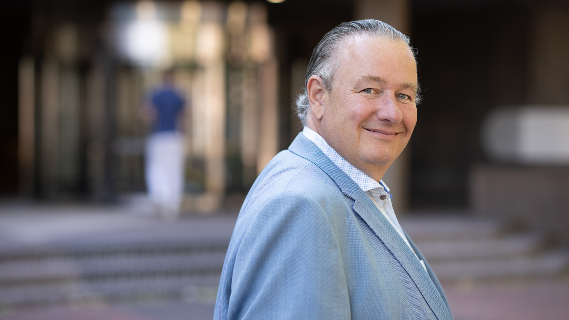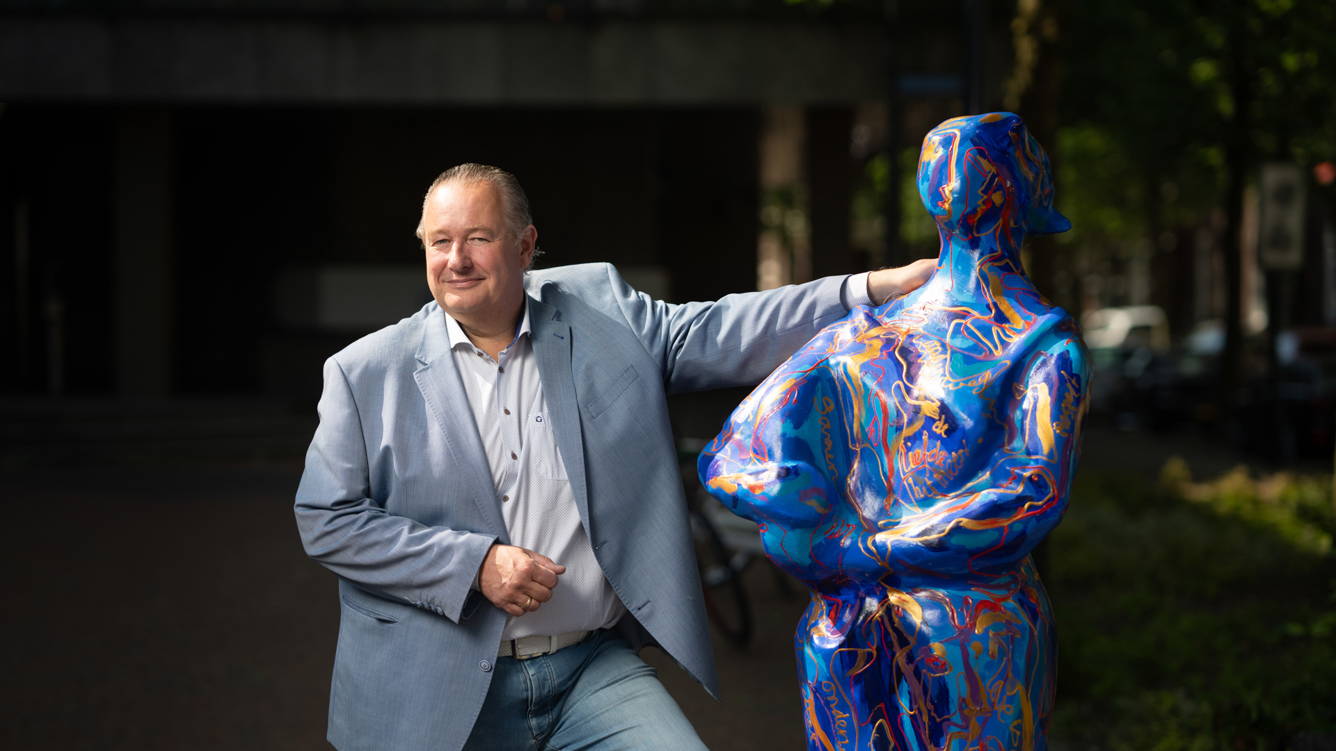 De ontvangst is meer dan hartelijk op het Bouwmeesterplein in hartje Gouda. Hij is op een zomerse dag samen met de fotograaf in de weer om dé perfecte plaat te schieten. Na het voorstellen volgt meteen zijn eerste grapje. “We zijn al klaar. Maar wat wil je, met zo’n fotogeniek persoon.”