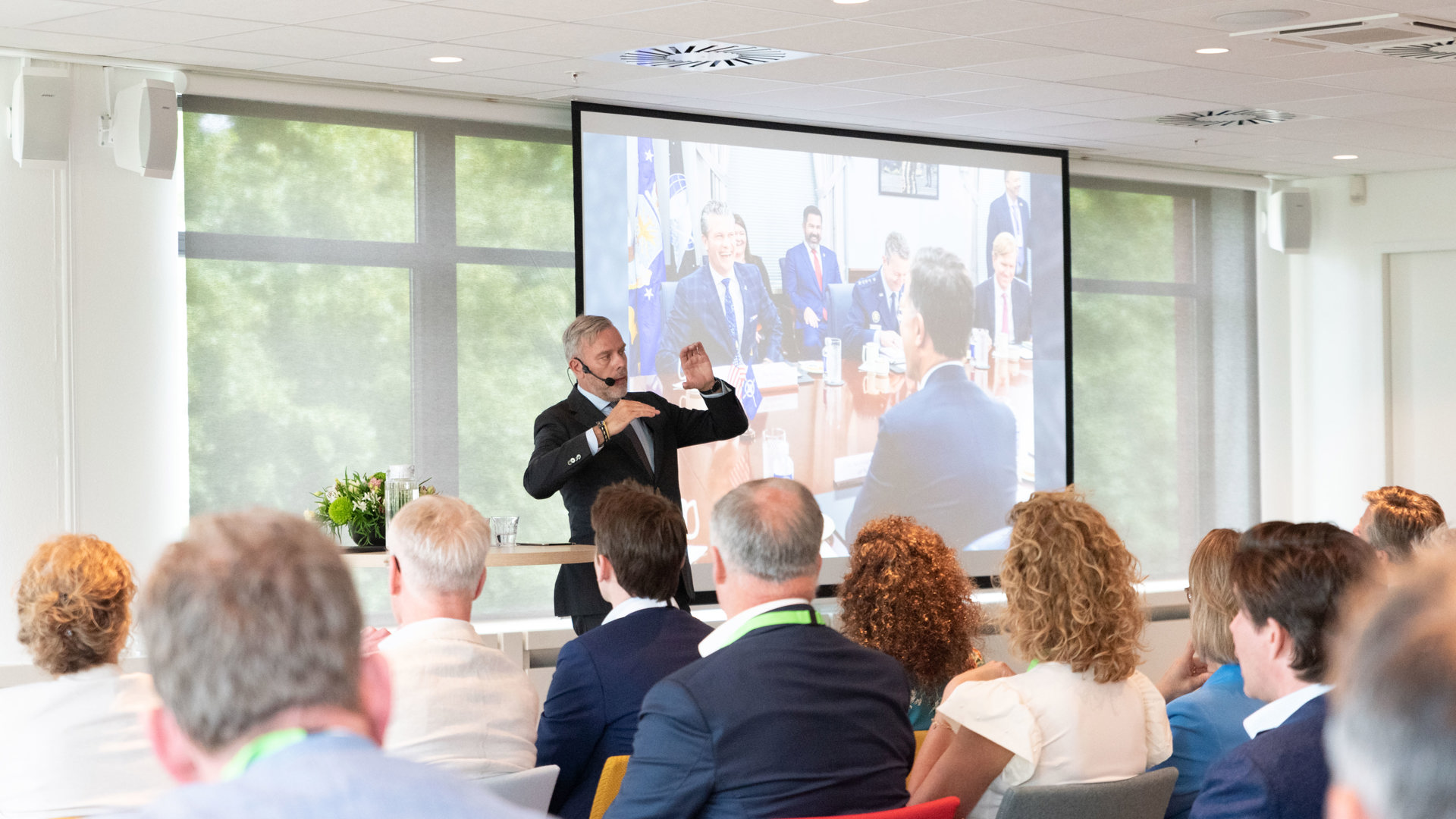 Een van de meest indringende delen van de toespraak ging over de noodzaak om ons voor te bereiden op oorlog – niet als doemdenken, maar als realistisch leiderschap. “Vrede bewaren betekent: je voorbereiden op oorlog,” zei Bauer. “In dit nieuwe tijdperk van collectieve verdediging bepalen niet wij, maar onze tegenstanders de tijdlijn. Dat is, onder andere, voor Nederland even wennen. We kunnen niet langer zelf bepalen wanneer en waar we deelnemen aan een conflict of wat ons 'ambitieniveau' is. We moeten ons voorbereiden op het feit dat er zich op een gegeven moment een conflict zal voordoen.” Hij stelde het publiek een confronterende vraag: “Wie van u hier aanwezig heeft het gevoel dat ze zijn voorbereid op oorlog? Het bleef stil in de zaal. “En stelt u deze vraag ook aan uw klanten? En hoe hun keten is georganiseerd, waar data wordt opgeslagen en of zij reservisten in dienst hebben? Kunnen ze de productie of dienstverlening op peil houden als de wereld in een spiraal van conflicten en spanningen blijft belanden?”